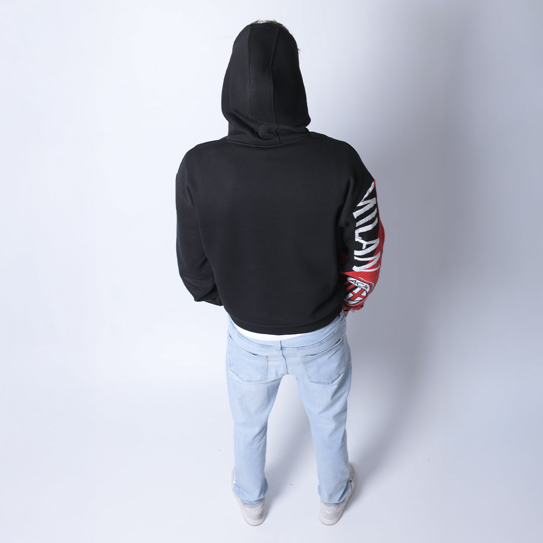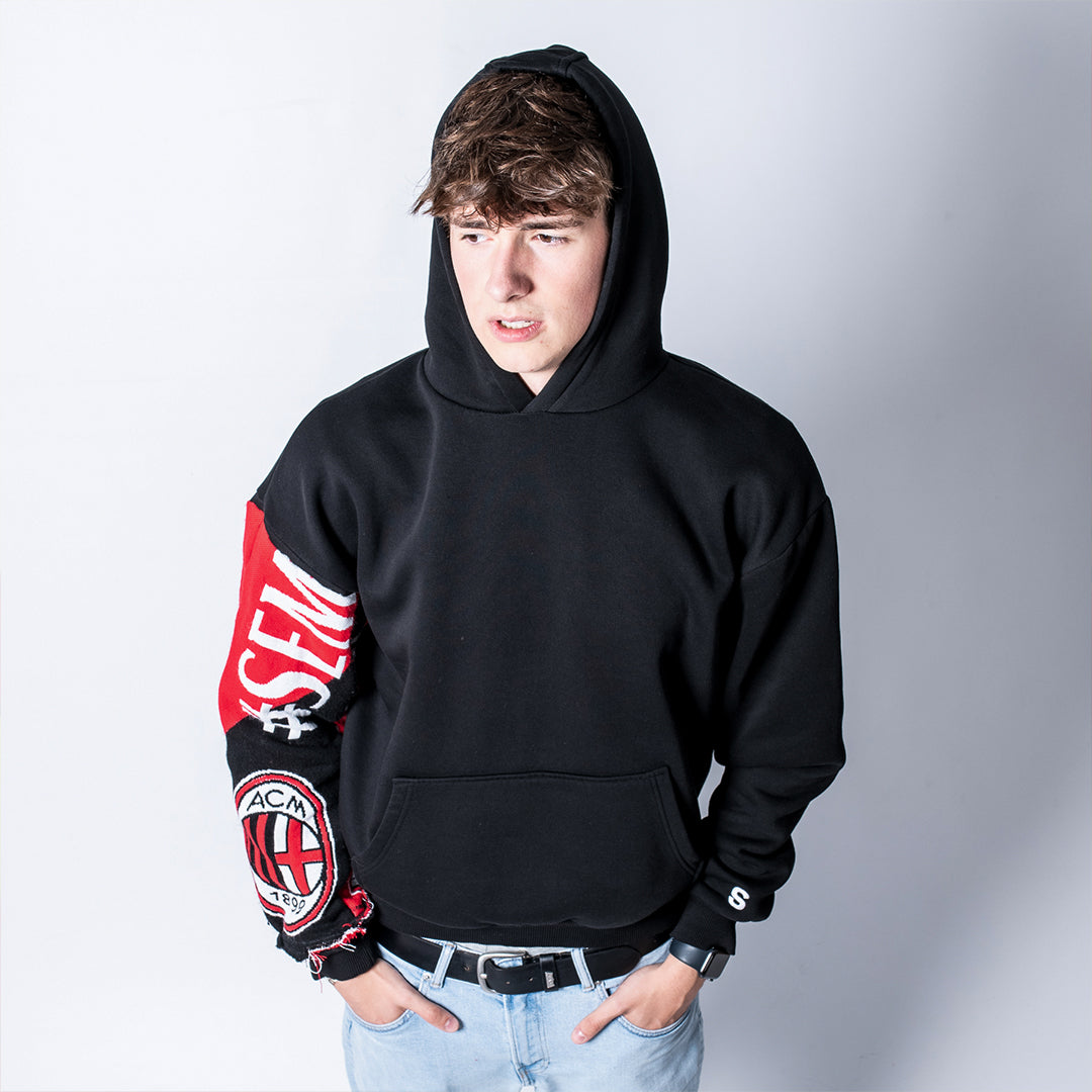 Unikatowa bluza stworzona w całości z oryginalnego szalika AC Milanu. Każdy detal, od kultowych barw po charakterystyczne frędzle, został zachowany, nadając całości autentyczny i niepowtarzalny charakter. To nie tylko hoodie, ale także manifest pasji i stylu, łączący streetwear z futbolem na najwyższym poziomie.