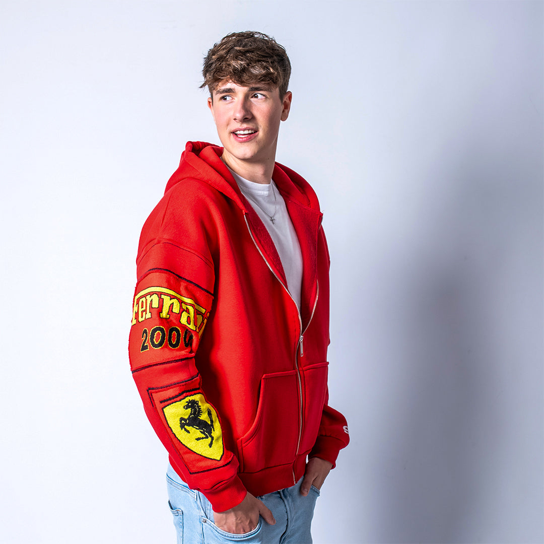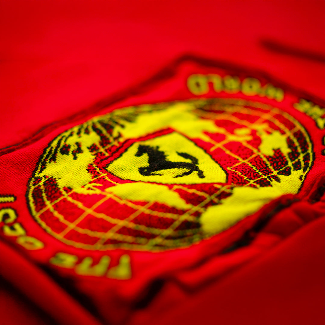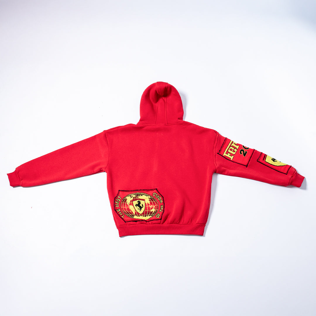 Unikatowa bluza, w której minimalistyczny design @statement.clo został przełamany łatami z oryginalnego szalika Ferrari Formula 1. Czerwone detale i charakterystyczne motywy wyścigowe nadają jej sportowego, drapieżnego charakteru. To custom dla tych, którzy chcą łączyć streetwear z pasją do motorsportu i wyróżniać się w tłumie.